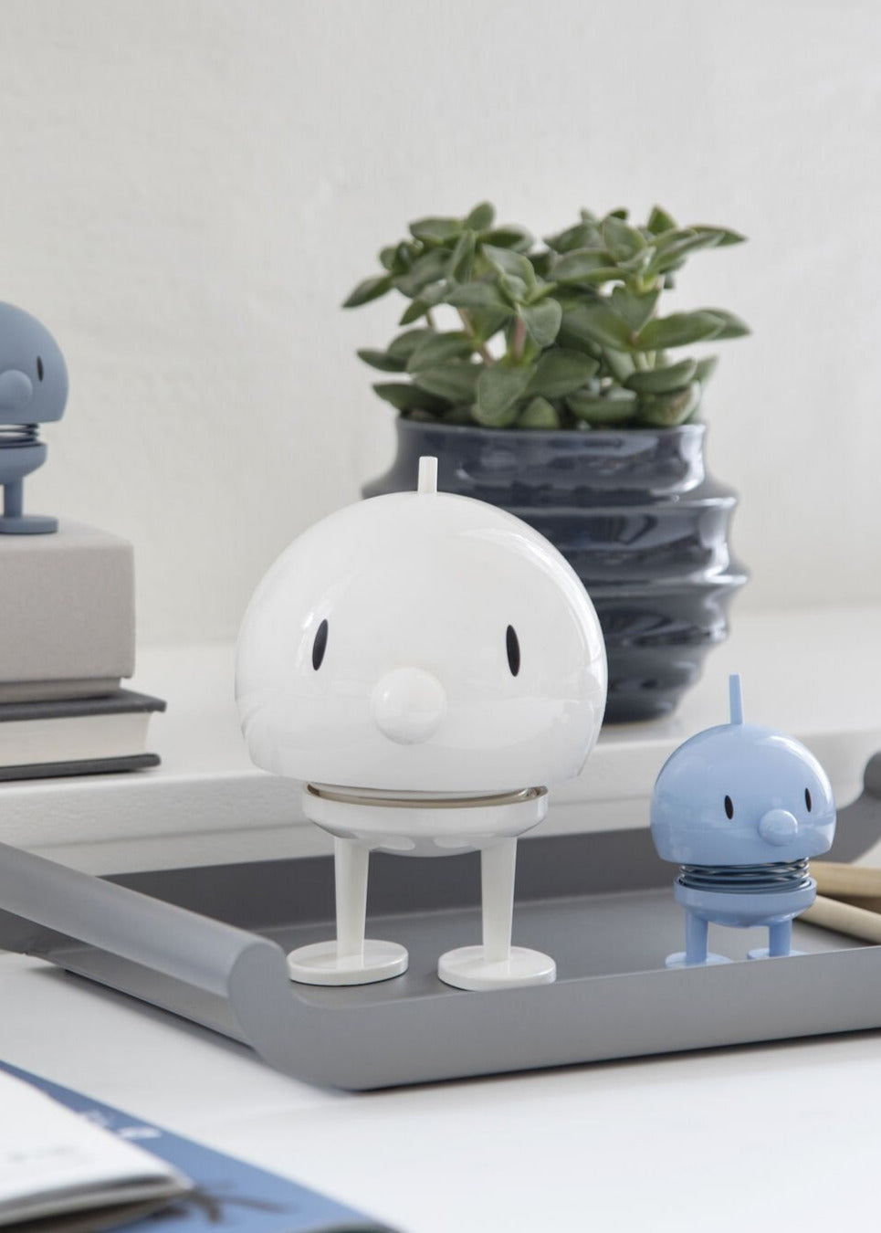 Fermement convaincu par le pouvoir du sourire, Gustav Ehrenreich a créé le joyeux mouvement Hoptimist à la fin des années 60. L’objectif était de concevoir une figurine qui rappellerait incessamment l’importance de rester positif et optimiste. Car, bien que les années 60 soient souvent appelées « les heureuses années 60 », cette décennie a été marquée par des événements perturbants. C’est pourquoi, la joie que répandait le design d’Ehrenreich était la bienvenue dans une période plutôt turbulente. Bimble et Bumble sont les tout premiers Hoptimists qu’a créés le designer : Une fille vêtue d’une robe avec des yeux souriants et un garçon attentif avec un bâtonnet sur la tête. Aujourd’hui, les joyeux Hoptimists font partie de l’histoire du design danois et créent de la joie dans le monde entier. Les figurines sont disponibles en quatre tailles différentes et dans une large sélection de couleurs qui répandent optimisme, bonne humeur et joie. Il existe un Hoptimist pour chaque occasion et chaque personne.
