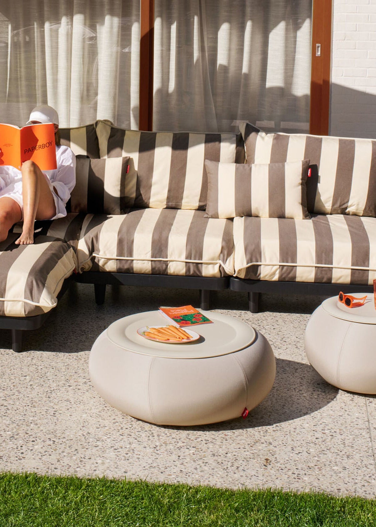 Humpty Outdoor et Dumpty Outdoor sont des tables basses gonflables pour une utilisation en extérieur. Généreusement rondes et ultra robustes, elles incarnent l'élégance pour poser tes boissons. Le plateau en acier solide maintient le tout parfaitement en place. Tu as renversé quelque chose ? Il te suffit de passer la housse à la machine à laver. Et comme Humpty Outdoor et Dumpty Outdoor sont ultra légers, tu peux facilement les repositionner.