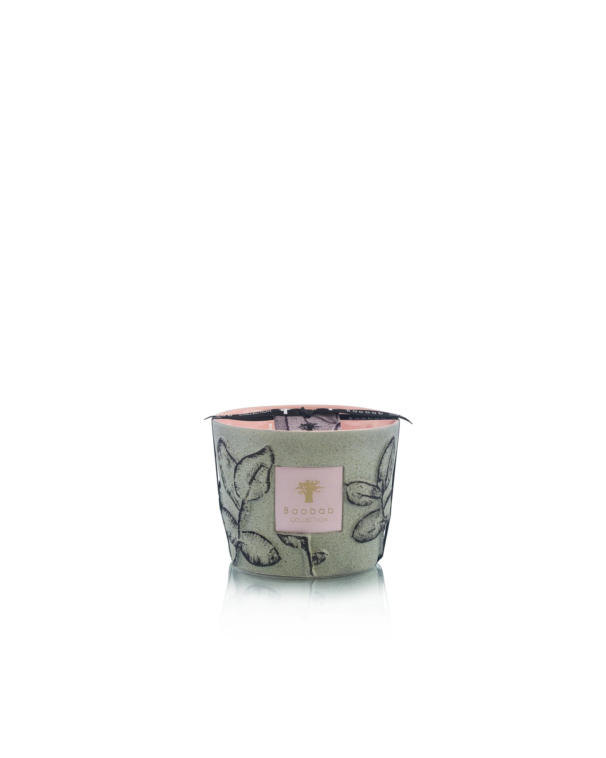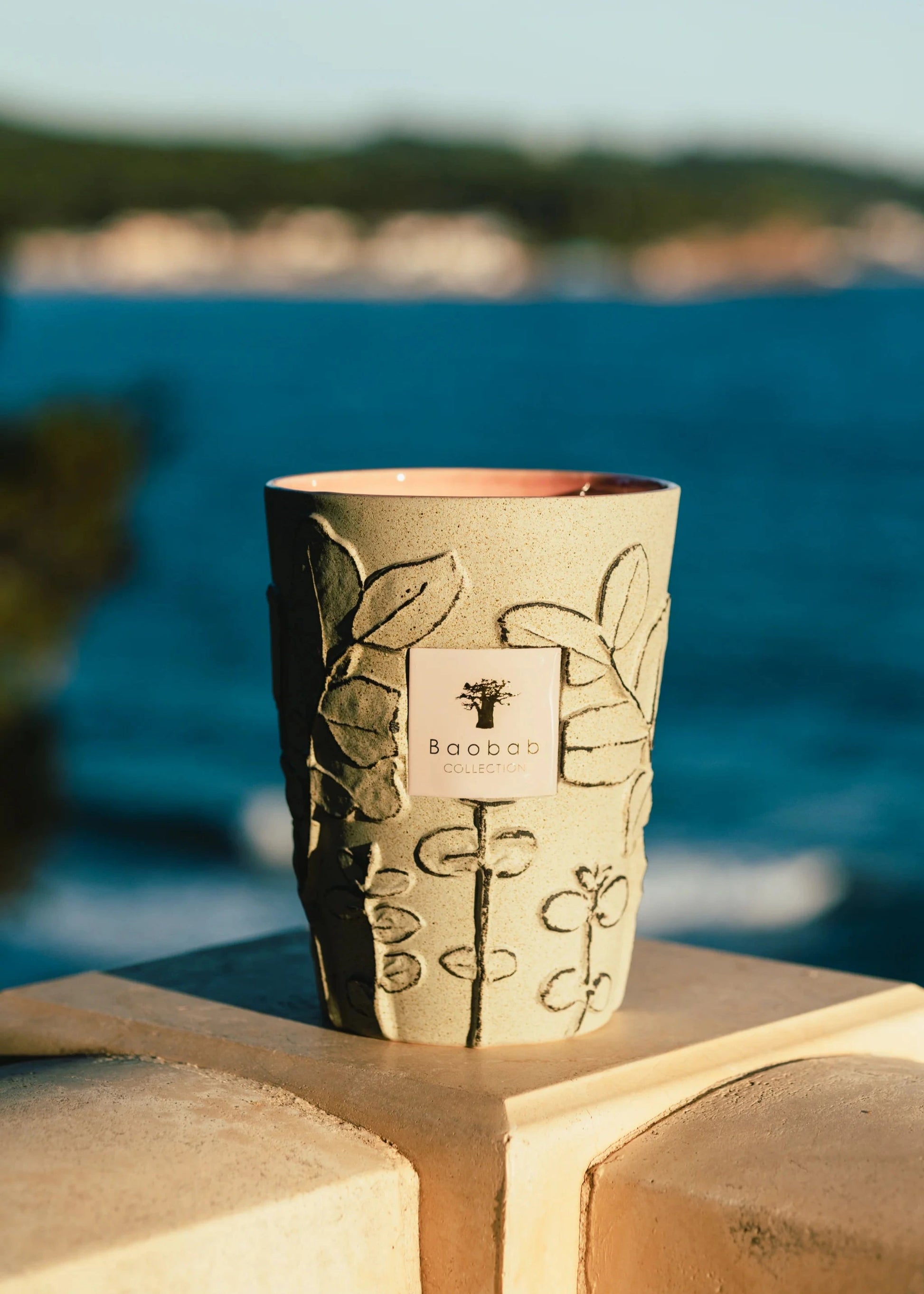 La bougie parfumée Maquis a été réalisée dans une céramique artisanale fabriquée à la main au Portugal. L’émail mat et vert chiné qui recouvre la céramique est contrasté par un intérieur émaillé en rose brillant.
