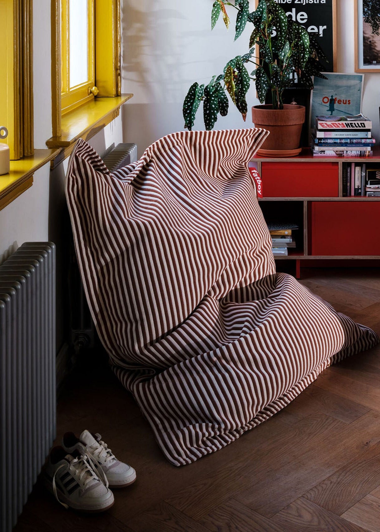 Le pouf Original Slim Terry est tout aussi emblématique et confortable que le pouf Original, mais dans une version légèrement plus petite. Avec sa taille modeste, ce pouf moelleux s'intègre à peu près partout. Et comme son nom l'indique, Fatboy a relooké ce pouf Original Slim avec un aspect et un toucher en tissu éponge doux. Le pouf en éponge rayé est, tout comme les autres poufs Fatboy, rempli de milliers de petites billes qui épousent les contours du corps pour un confort ou une détente ultimes.