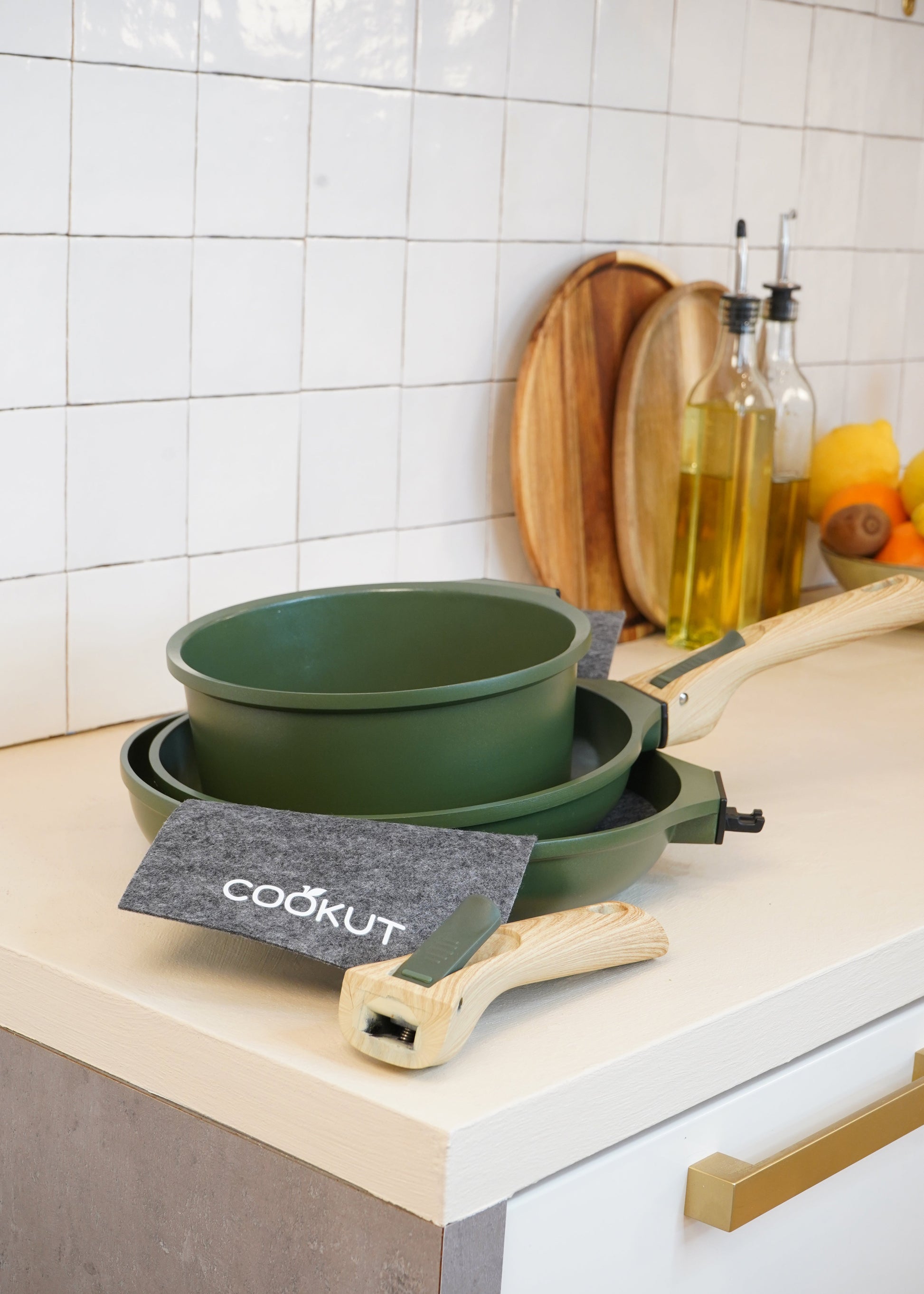 Ce pack contient une casserole 20 cm, une poêle 24 cm, une poêle 28 cm, 2 poignées amovibles et 2 feutrines de protection.