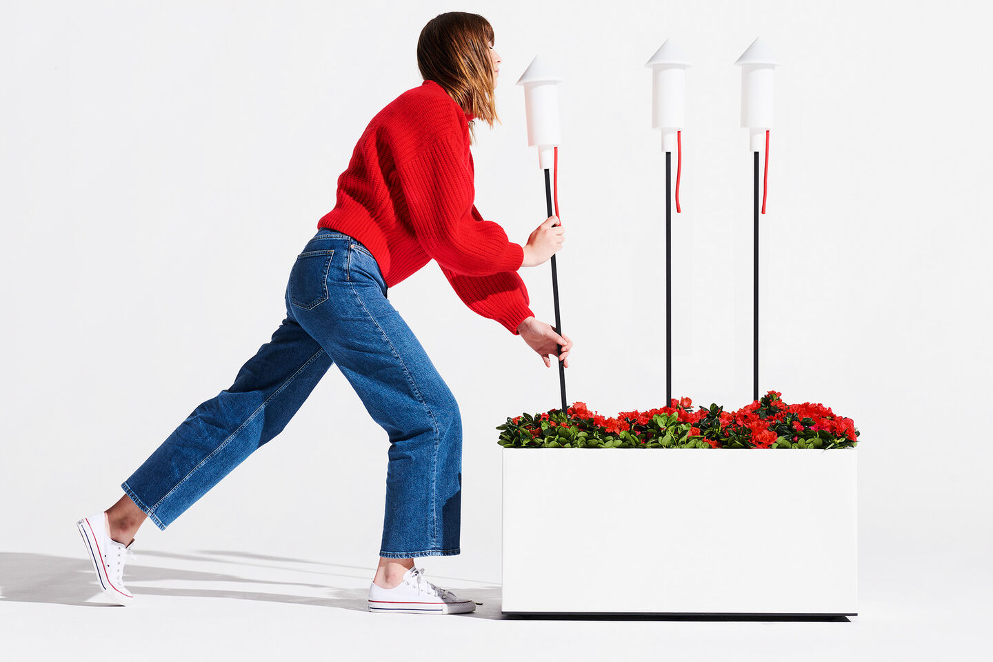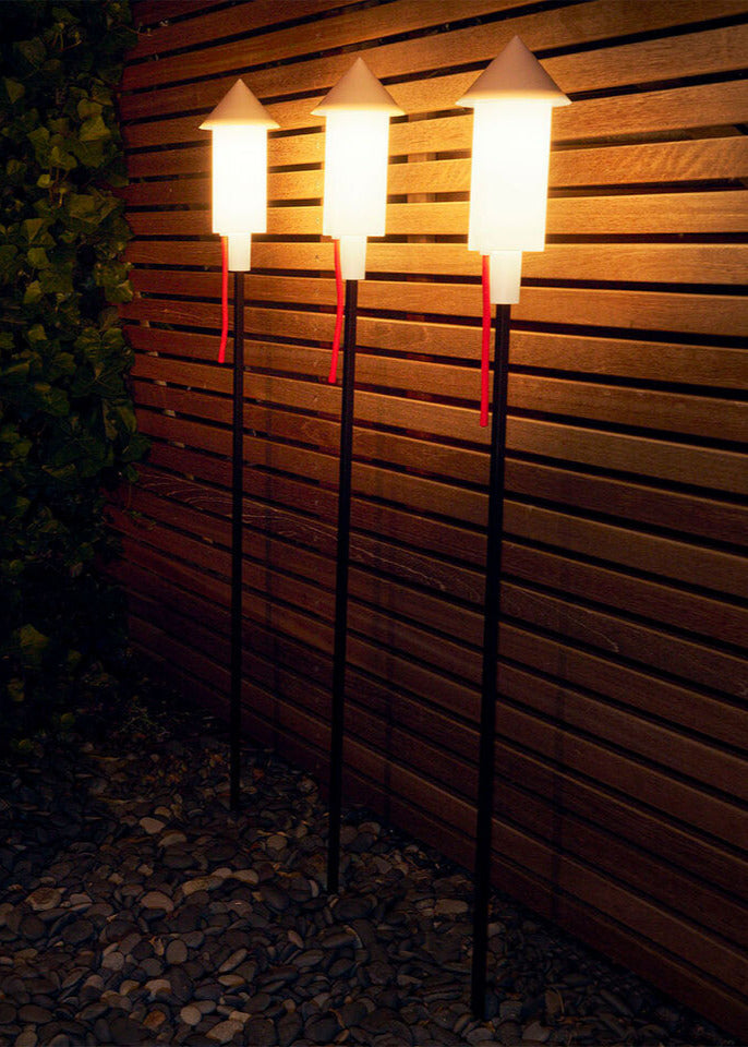 Lampes solaires à piquer avec une touche Fatboy. S'allument automatiquement au coucher du soleil, s'éteignent seules et se rechargent à l'énergie solaire.