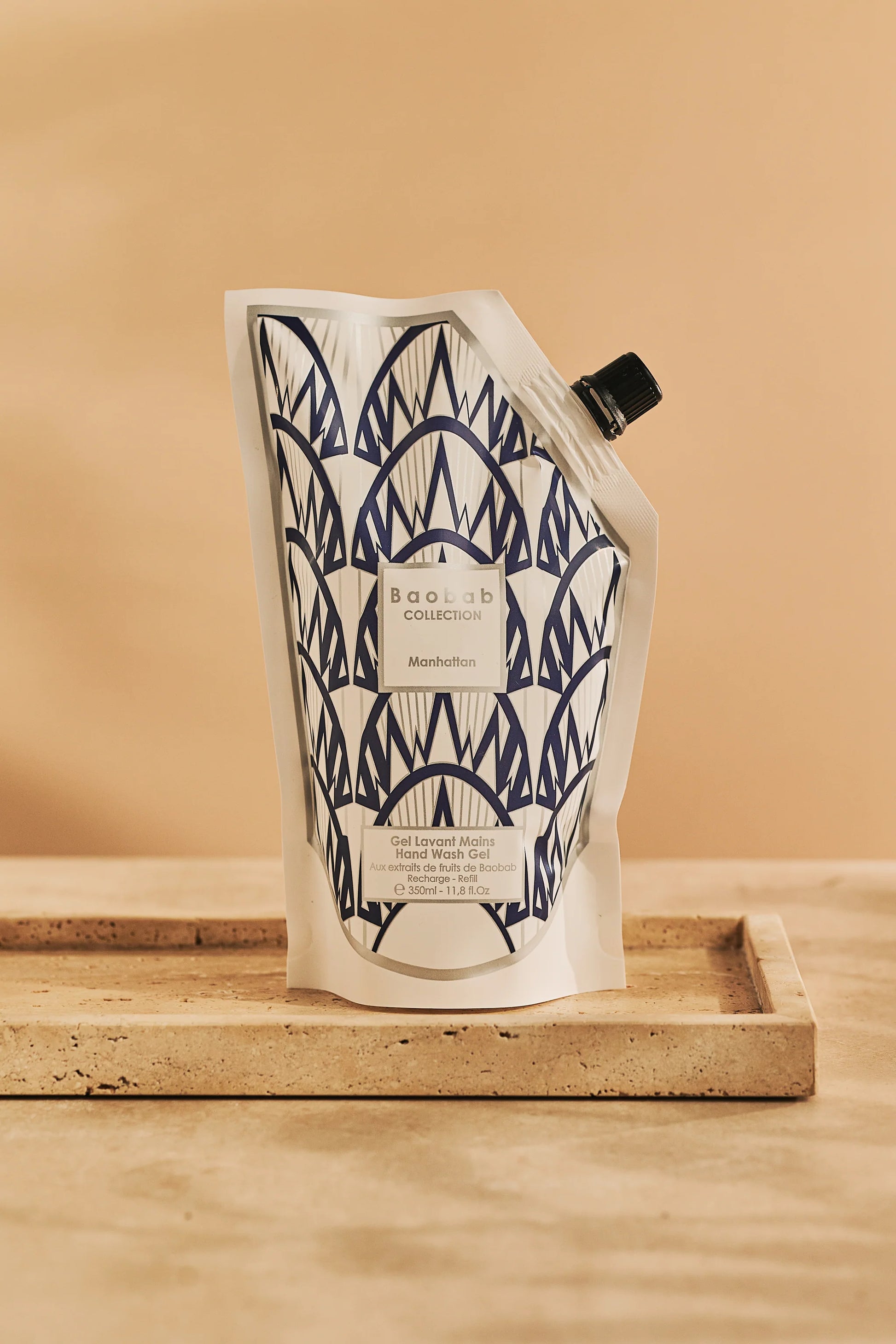 Notre recharge de gel lavant pour les mains Manhattan contient 350 ml de produit. Entrez dans une démarche éco-responsable et rechargez votre flacon en verre à l'infini !