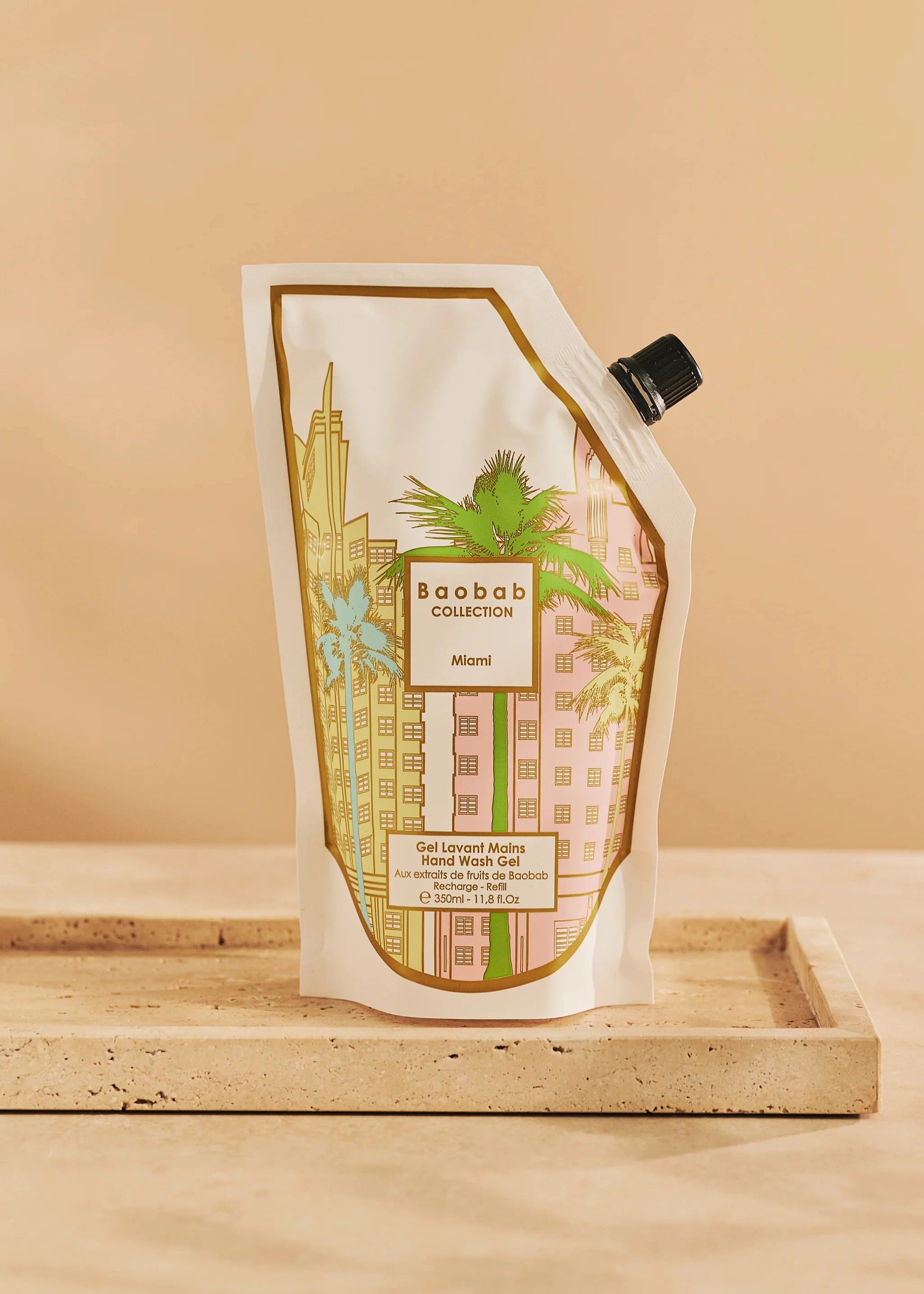 Notre recharge de gel lavant pour les mains Miami contient 350 ml de produit. Entrez dans une démarche éco-responsable et rechargez votre flacon en verre à l'infini !